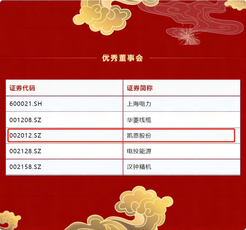 凯恩股份董事会始终以高质量发展为目标、坚持长期价值主义,通过推进战略转型、落实绿色升级、深入精细化管理,内控管治、ESG实践、资本转型、信息披露、投资者关系等方面的优异表现获得认可,公司董事长刘溪女士获评“最具战略眼光董事长”,公司董事会获评优秀董事会”。
