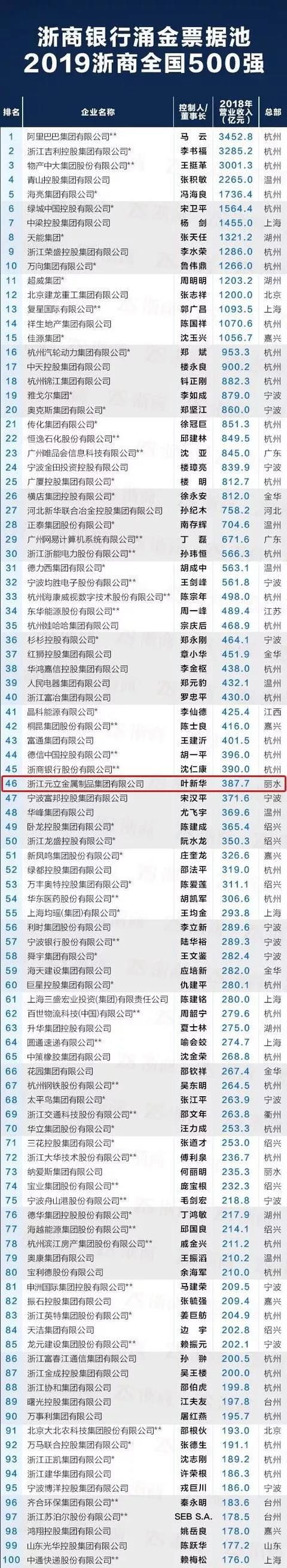 6月13日,在第16届浙商投融资大会暨2019 5G+峰会举办期间,发布了“浙商银行涌金票据池·2019浙商全国500强”榜单。浙江元立金属制品集团有限公司、尊龙凯时人生就是搏特种材料股份有限公司荣登浙商全国500强。